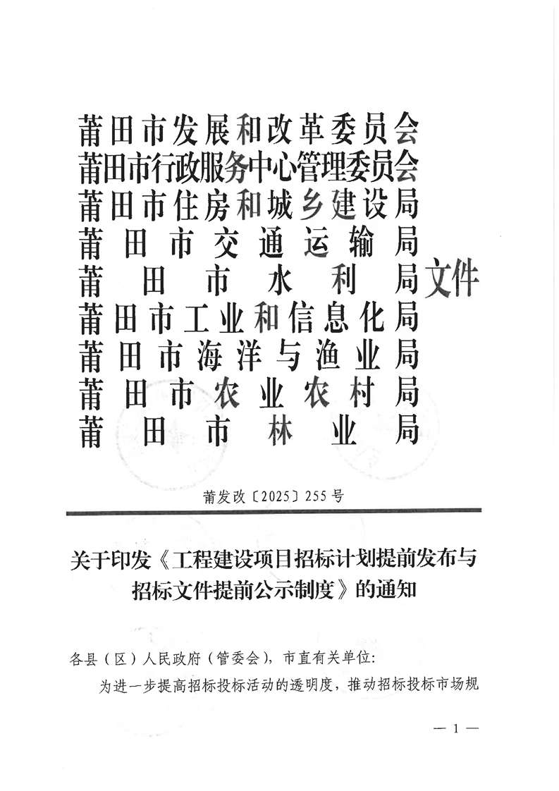 关于印发《工程建设项目招标计划提前发布与招标文件提前公示制度》的通知