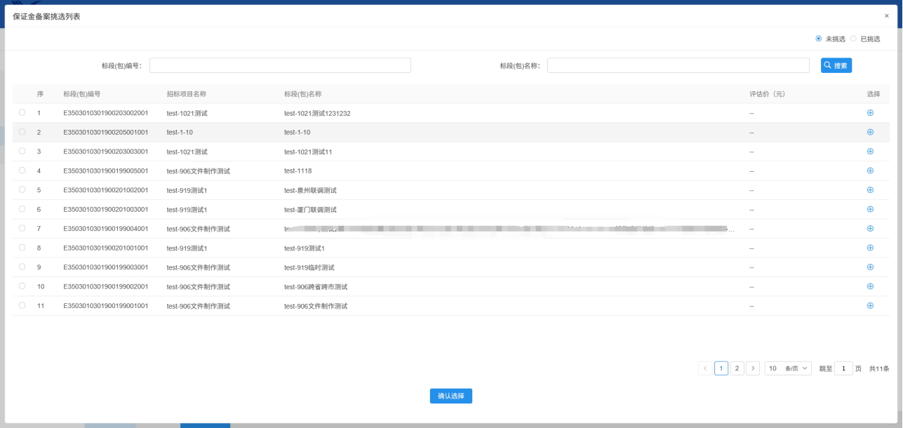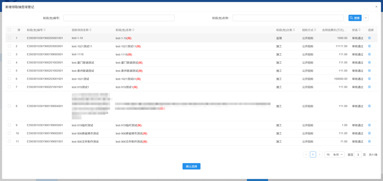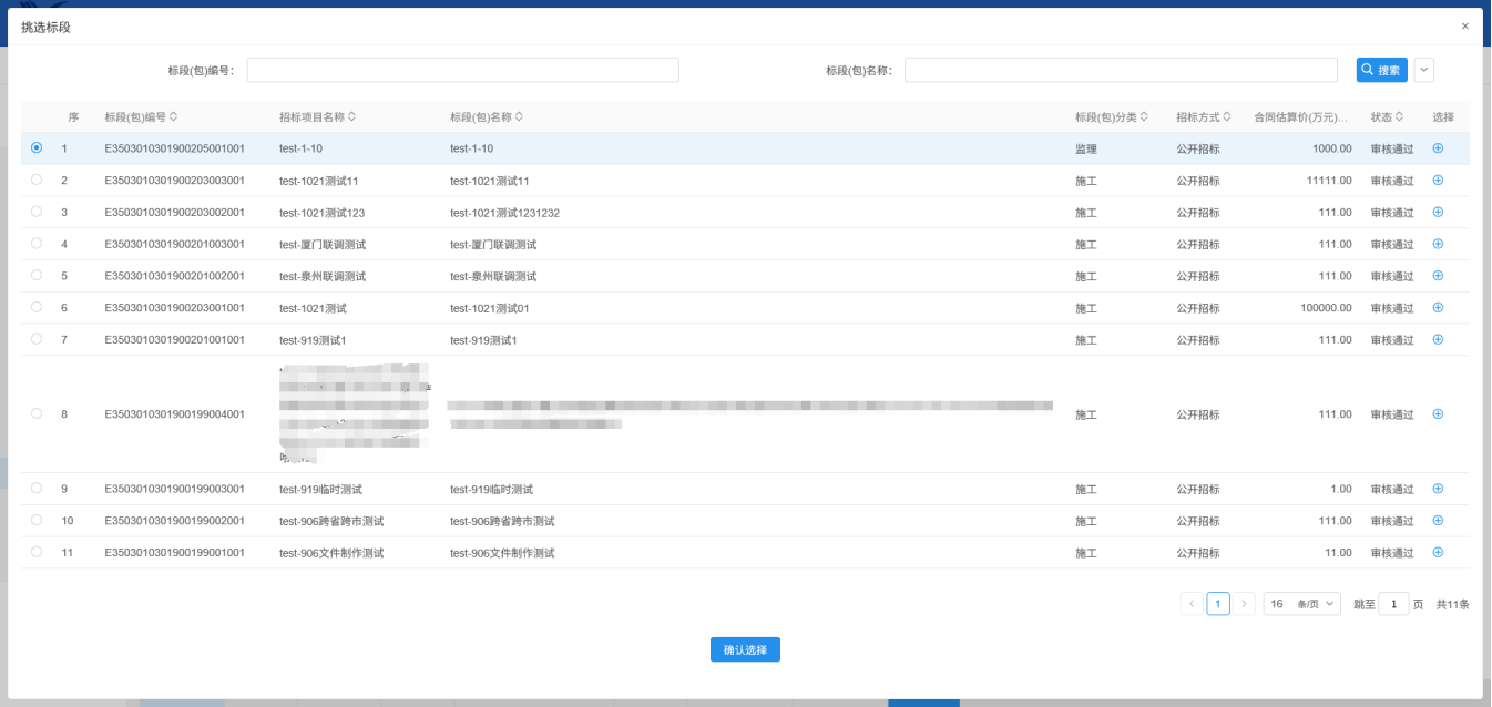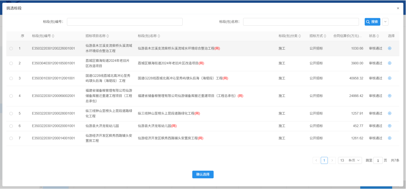 2.挑选标段,点击确定选择: