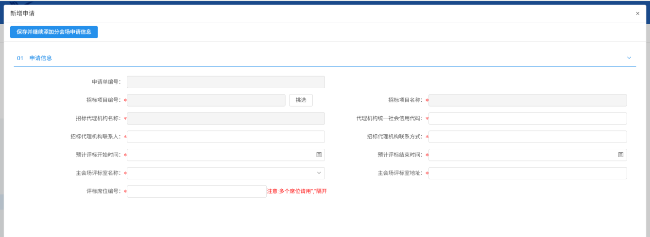 5、点击“新增分会场场地预约申请”,选择对应分中心