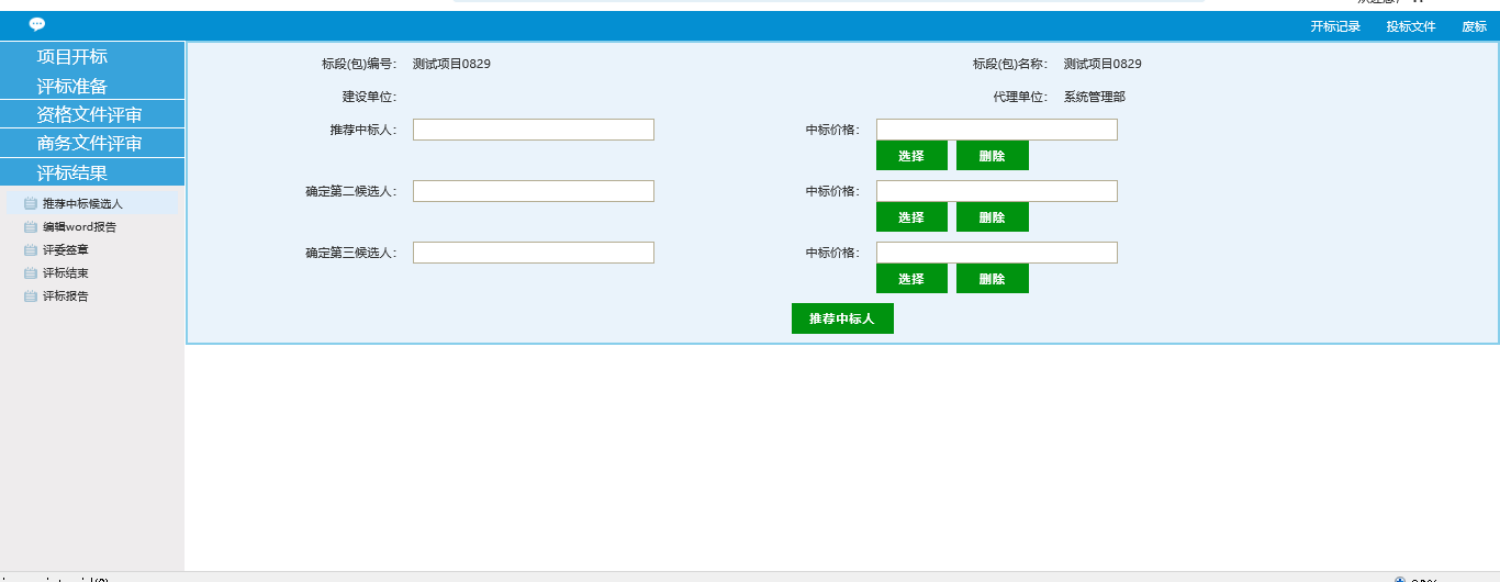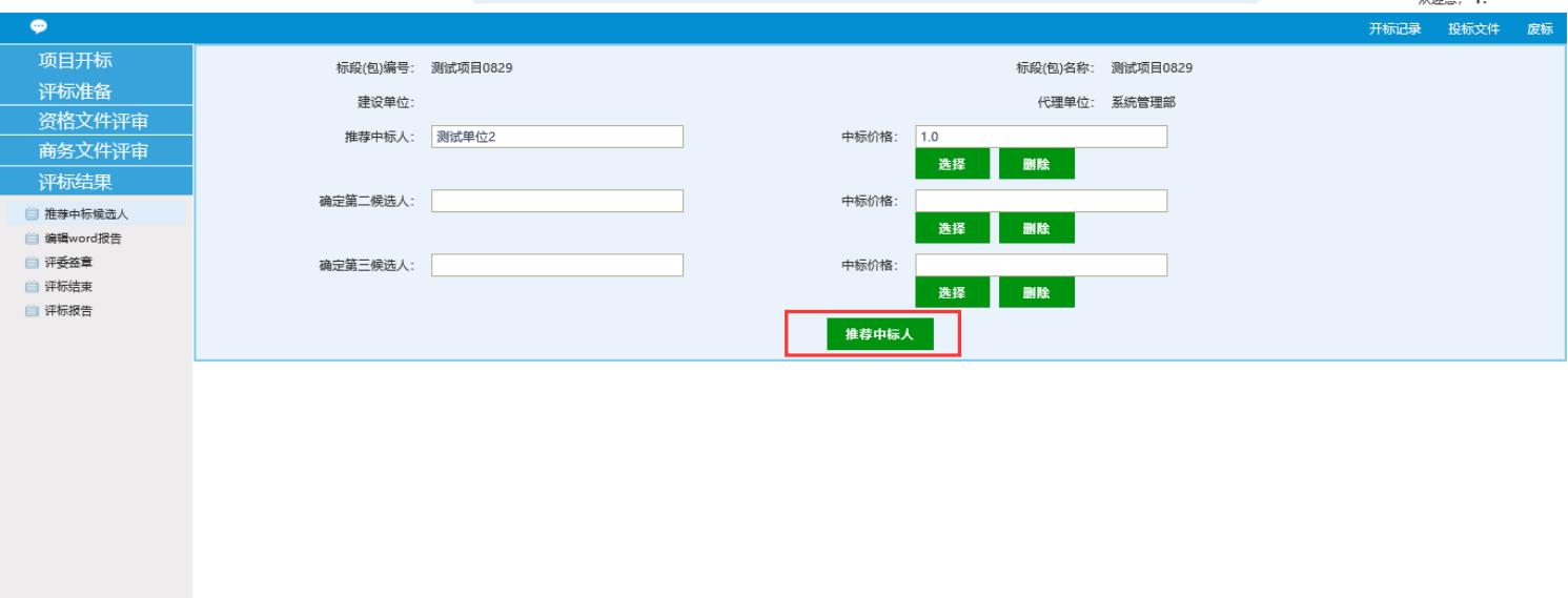 2、填写完成后,点击下方的推荐中标人。