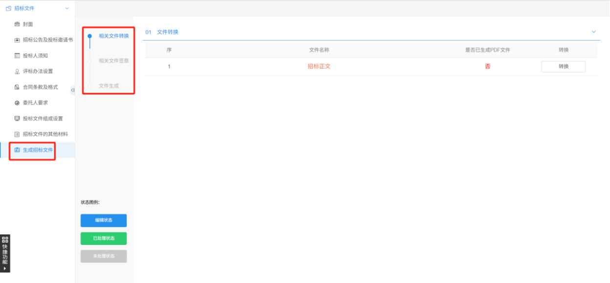 6.填好和原来一样转换后生成招标文件