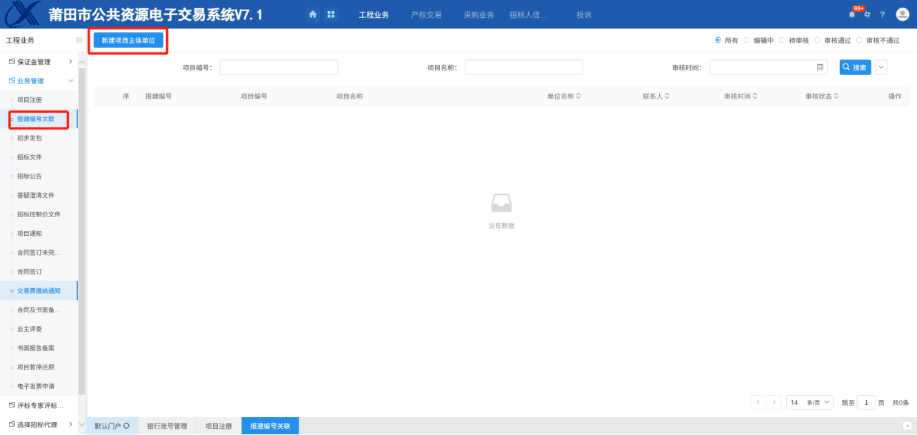 1.招标代理进入会员系统,进入“报建编号关联”页面中,如下图