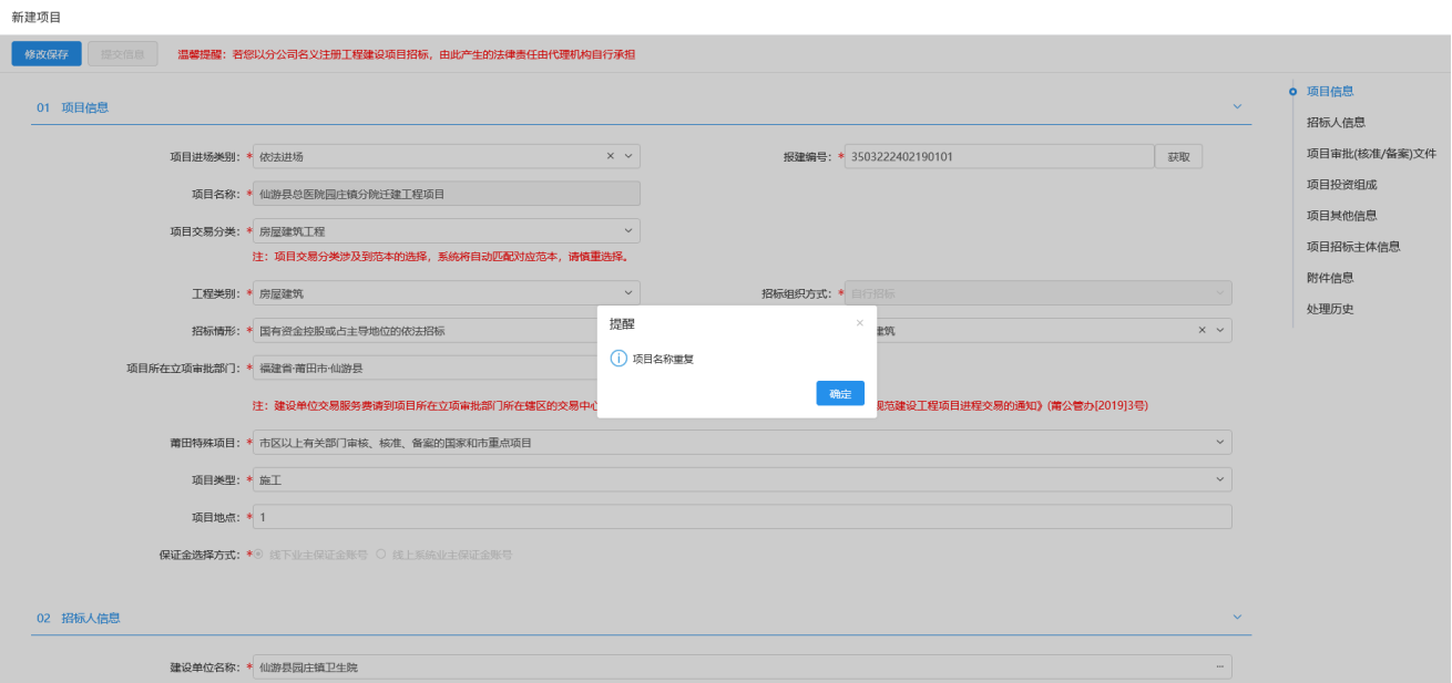 流程功能:注册新项目,提交建设单位备案