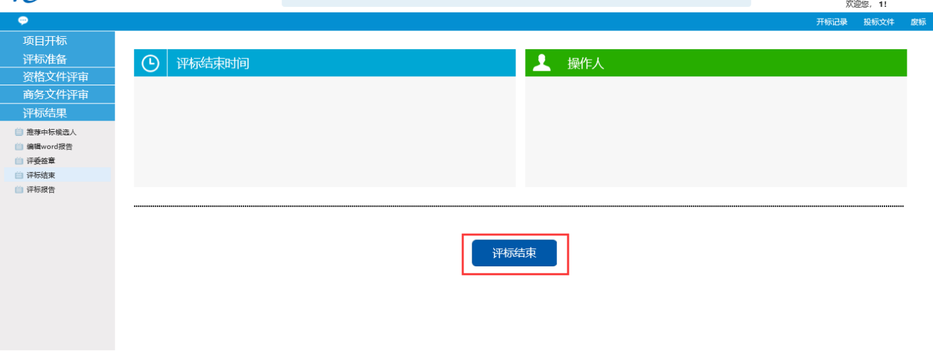 对上述流程都操作完毕,确认无误后,点击开标结束,结束开标这一环节。