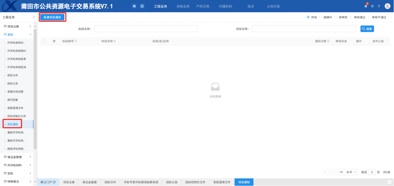 1.进入项目通知页面,点击右边的