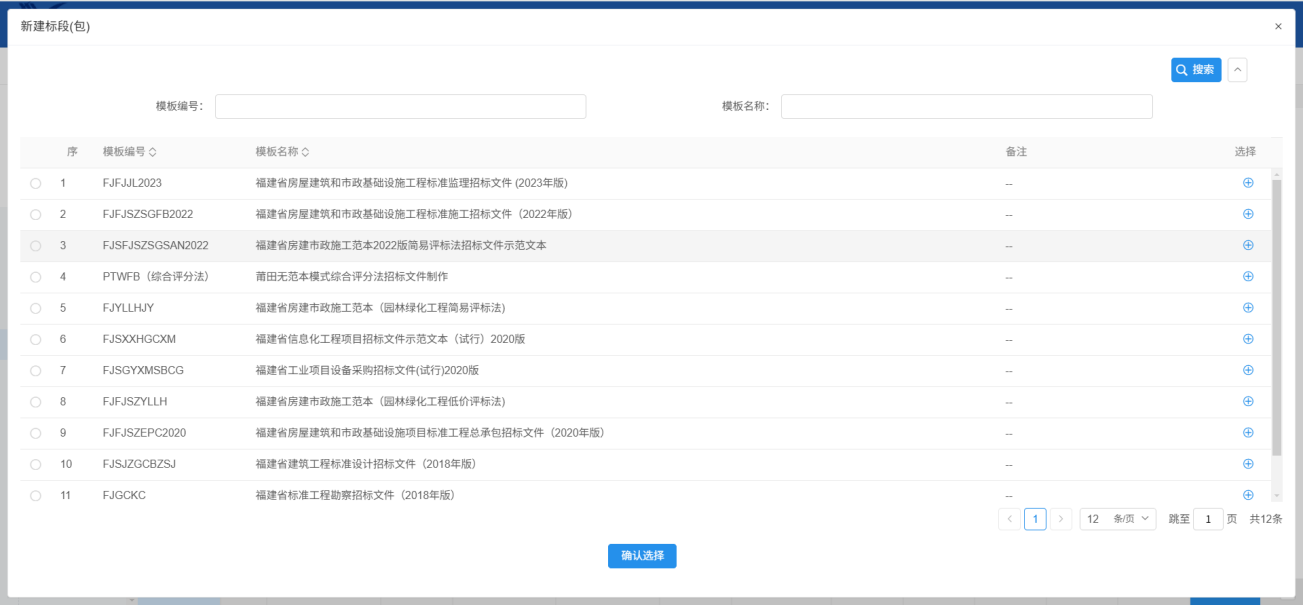 3.进入招标文件选择范本界面,请选择一个