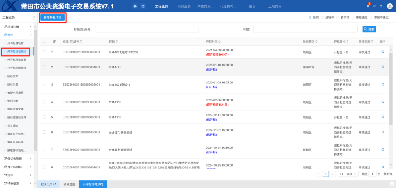 1.进入页面“开评标场地预约”,如下图: